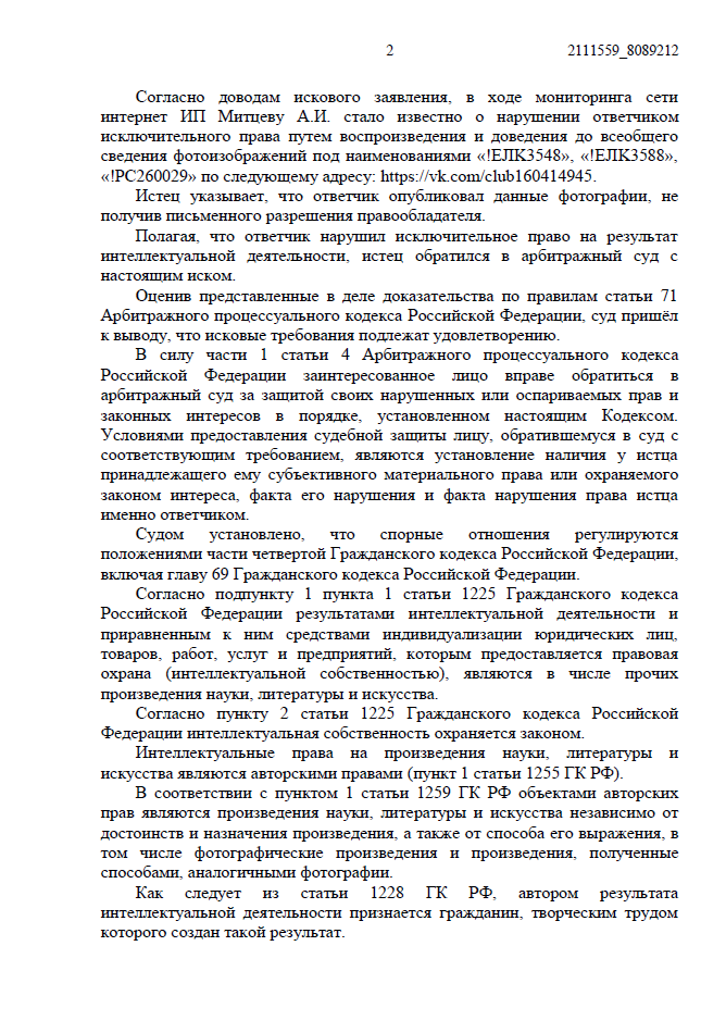 Мы ссылались на нормы статей 1229, 1252, 1270 и 1301 ГК РФ, подтвердив, что изображения использовались в коммерческих целях без согласия правообладателя.
