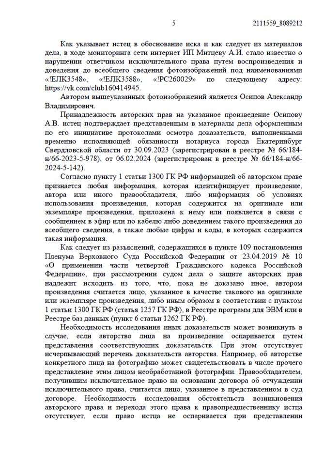 - Необходимо было юридически закрепить, что паблик «ВКонтакте» принадлежит именно ответчику.